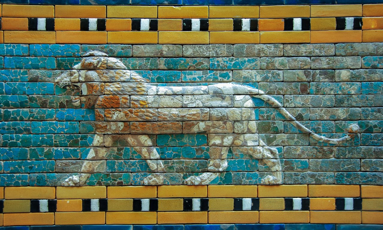 تتداعى الذاكرة، وأنا أغادر متحف الفنّ الإسلاميّ. وسرعان ما يزداد تداعيها، في متحف الشرق الأدنى القديم! هناك، شعور بالذهول راودني أمام بوّابة عشتار، ألوانها تذكّر بالزجاج المعشّق المنتشر في عمارة حلب القديمة. نقوش البوّابة مدهشة، وأبرزها زهرة الأقحوان، رمز عشتار الآلهة السورية الأمّ الأصل أو الأمّ الكبرى. ثم رموز آلهتنا السوريّة القديمة.