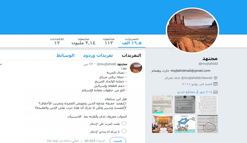 تصعب كتابة مقالٍ أو تحليلٍ حول خفايا دوائر صناعة القرار وآليات عمل الحكم في المملكة العربية السعودية من دون الإشارة إلى حساب "مجتهد" على "تويتر." يتابع الإعلام العربي – القابع على شتى الضفاف المواجهة للسعودية – ما ينقله "مجتهد" من أسرار وتسريبات بشغف وتصديق لا حد لهما، خاصة أنه تموضع في موقع معادٍ تماماً لولي العهد محمد بن سلمان. فهل تلك الثقة التي يمنحها المتابعون يا ترى ما يشجع "مجتهد" اليوم على الانتقال من كشف خبايا العائلة الحاكمة إلى إطلاق الأحكام الشرعية ضدها؟