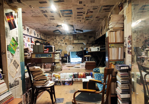 البرج، الزاوية، الحلم العربي، تسميات مختلفة يطلقها "السيد" على صالة صغيرة مسقوفة ومغطاة بأوراق جرائد قديمة، ومع الأثاث القليل، ستقف محاطًا بكتب ومجلات، أسطوانات نادرة عربية وأجنبية، أجهزة تشغيل أسطوانات كهربائية ويدوية (بيك آب ــــ فونوغراف).
