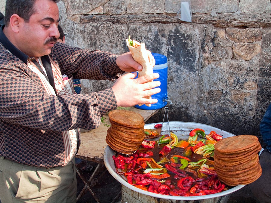 كان لوالدي شرطان أساسيان قبل الوليمة "الصقاقية"، أولهما من نصيب البائع وهو ألا يضع الكثير من الفيلفلة الحارّة في رغيفي، وثانيهما من نصيبي وهو وعد قاطع بألا أخبر أمي، أما ذروة انتصاراتي في هذا المجال فقد بلغتها بعد عامين، حين صرتُ قادرًا على التهام كميات غير محدودة من الفليلفة الحارّة باستمتاع مازوتشي، يشبه استمتاعي إذ أتذكر الآن تلك الأيام!
